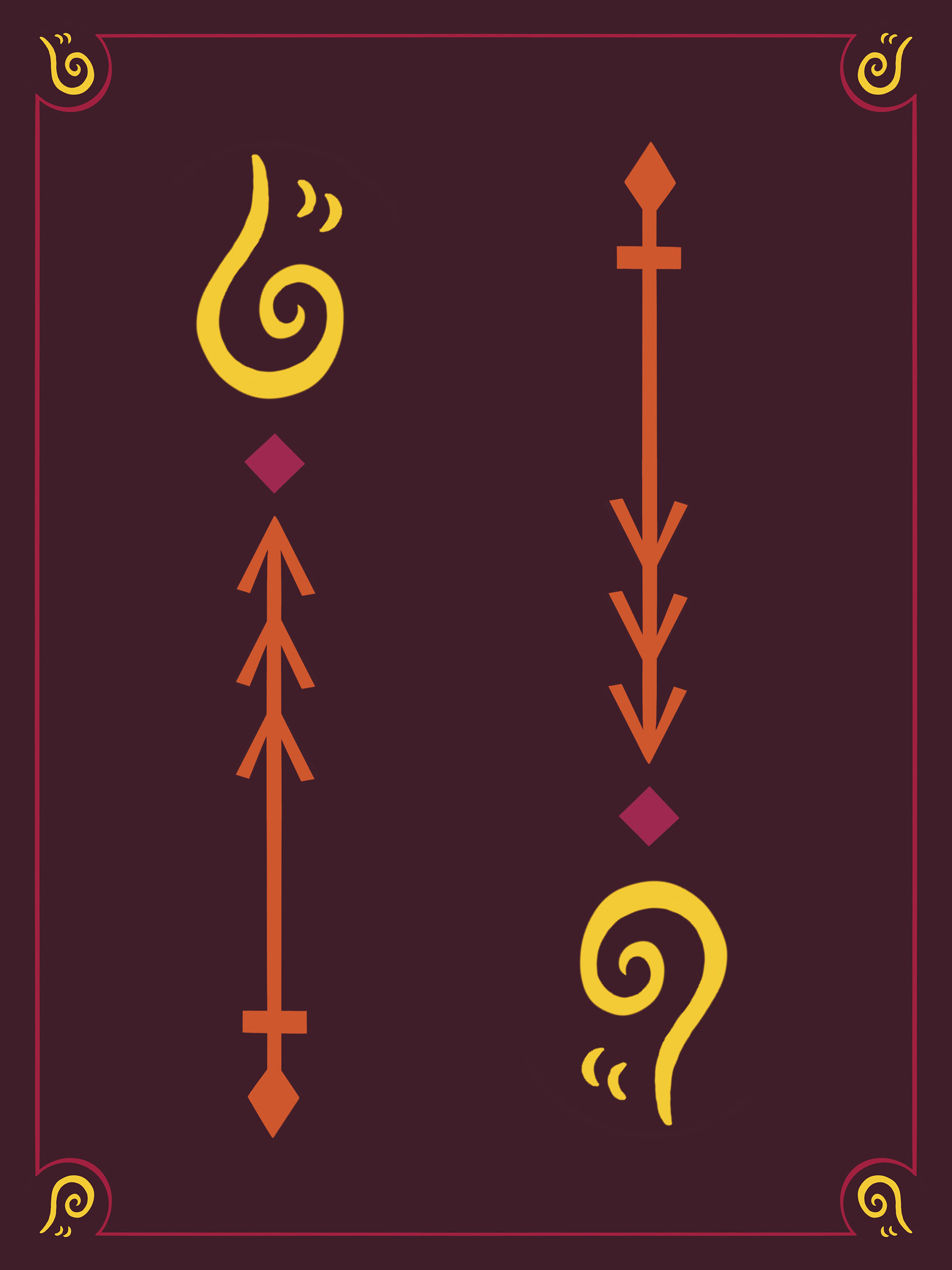 I began the project with freeform sketching, creating spontaneous shapes and doodles that evolved into glyph-like symbols inspired by the traditional tarot suits: Wands, Cups, Swords, and Pentacles. I researched tarot meanings and selected one Major Arcana card and four Minor Arcana cards that best aligned with the narrative I wanted to tell.